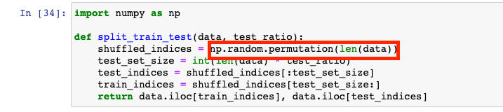 2. np.random.permutation()을 호출하기 전에 seed를 지정하는 방법(ex. np.random.seed(42) )